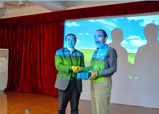 工商管理系主任韩波代表学院向田中理先生赠送纪念品。